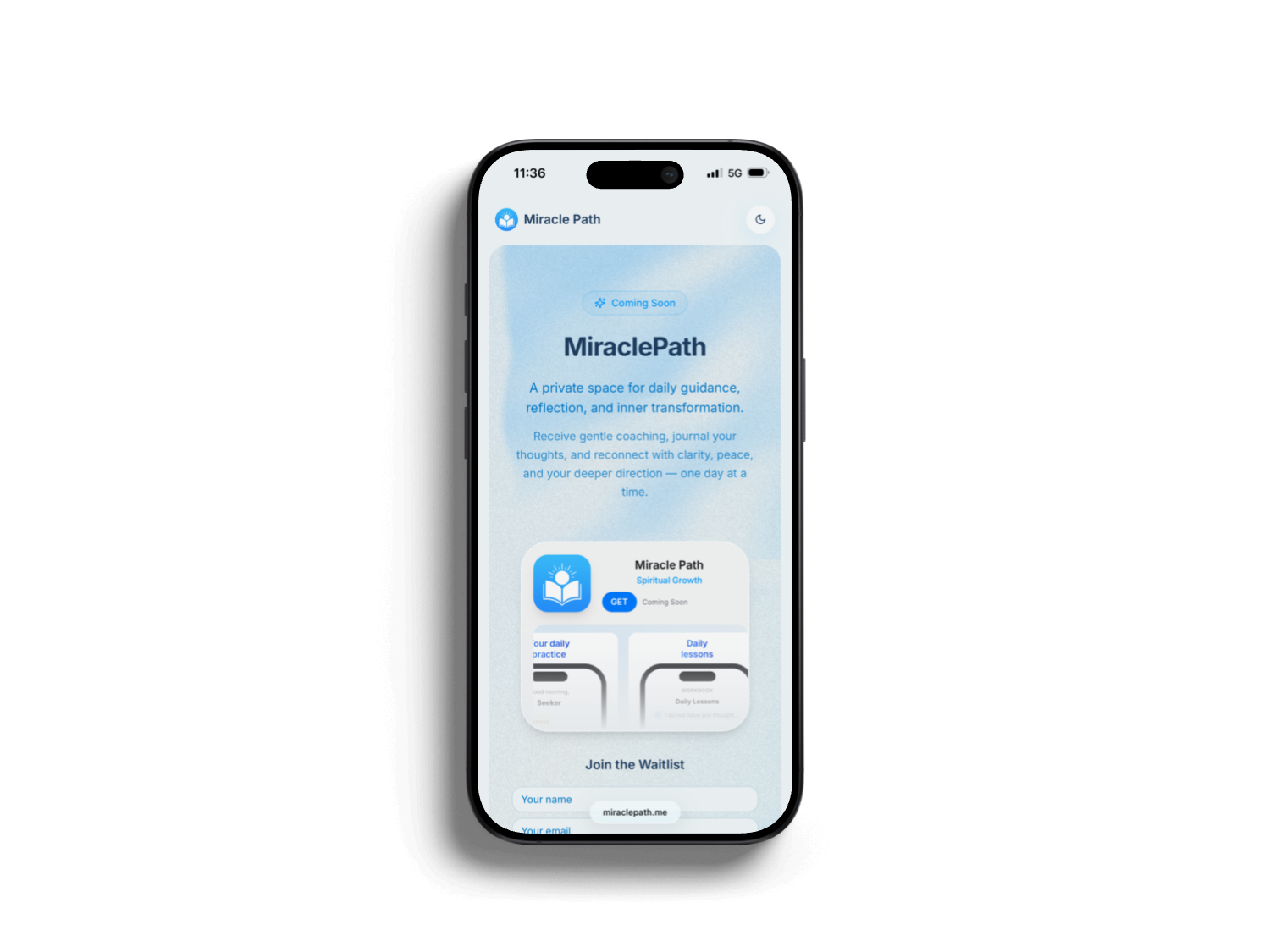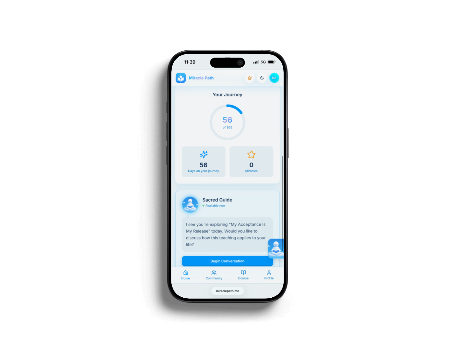 A daily spiritual coaching app based on A Course in Miracles — with weekly lessons, an AI-powered Sacred Guide, and community reflections.